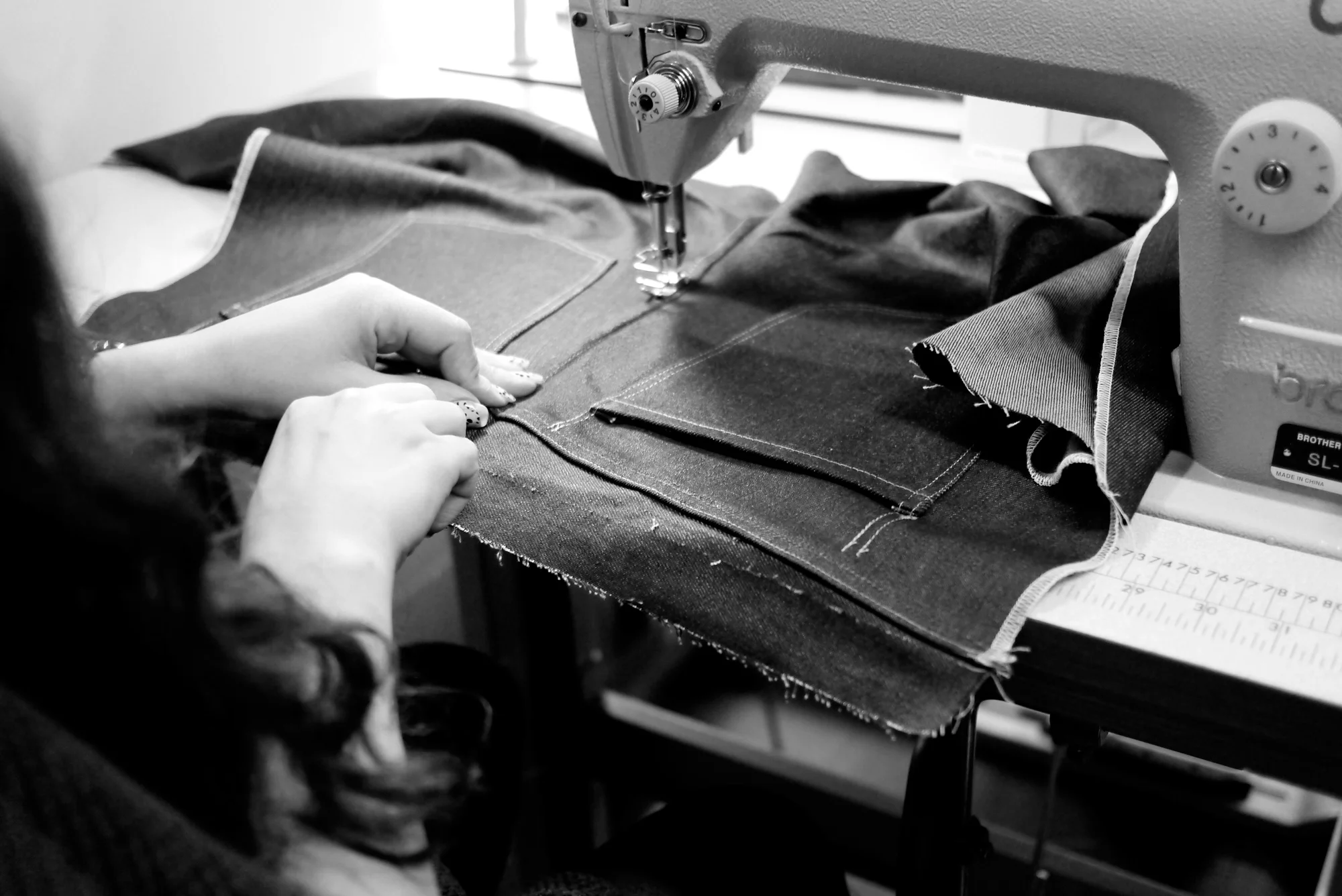 - Sewing up the selvedge seam